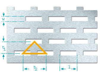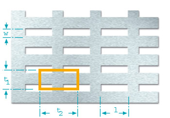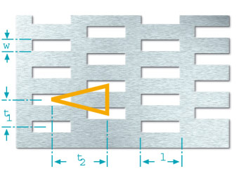 Slots with squared ends are available in straight rows (Lge) or in staggered rows (Lve). These perforated sheeds are used as sieve plates, decorative or cladding panels. Whenever slot perforations are specified it is important to indicate the edge of the sheet with which the long axis of the slots is to be parallel.
