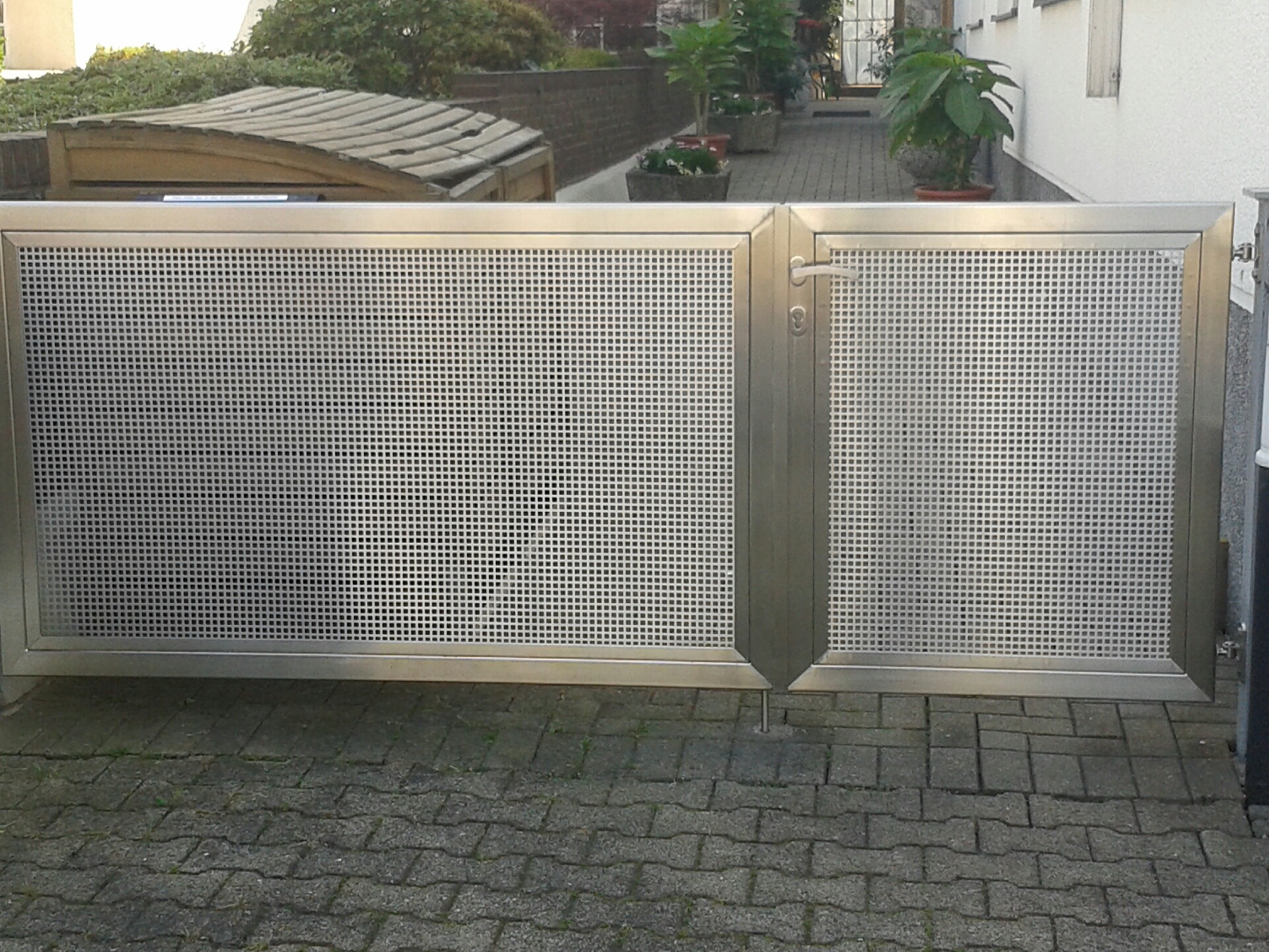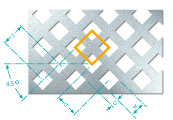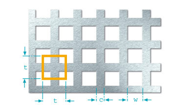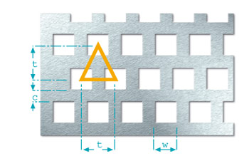 Square holes in straight rows (Qg) have grown in importance particularly in the recent past; this pattern is often used for claddings and enclosures. The square hole in staggered rows (Qv) are not offset by 60° one to another, since the definition of the pitch differs from that for staggered round perforation. This hole shape is used particularly for sieve plates. Square holes in diagonal rows (Qd) are rotated by 45°. This pattern is often used for decorative purposes.